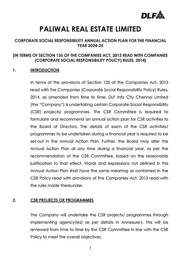 CSR Annual Action Plan